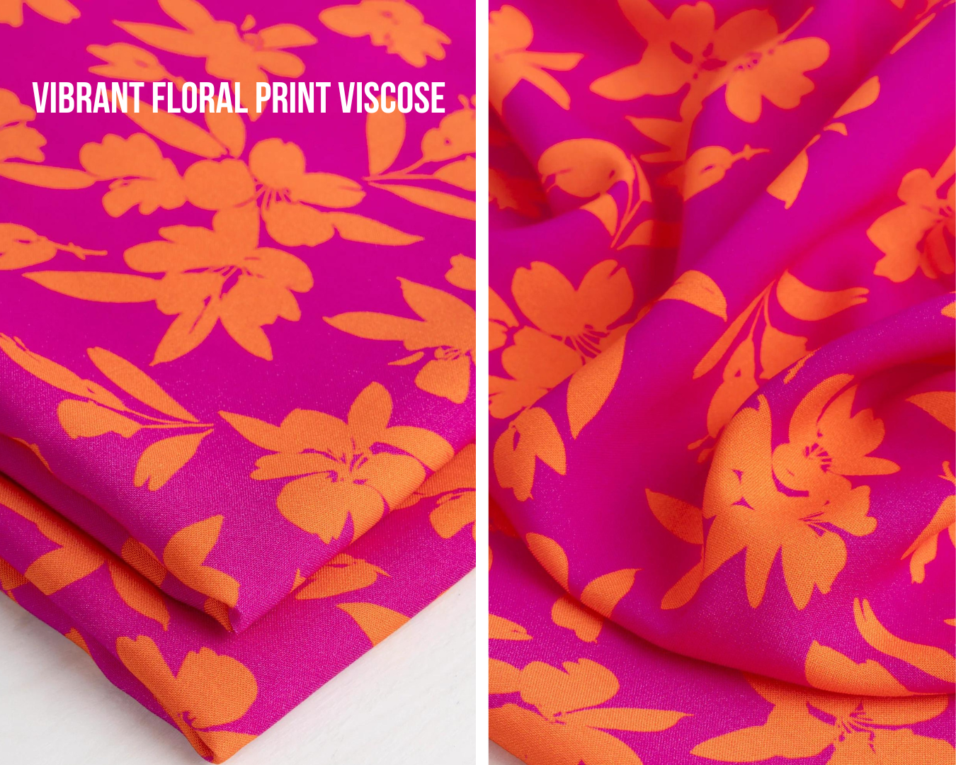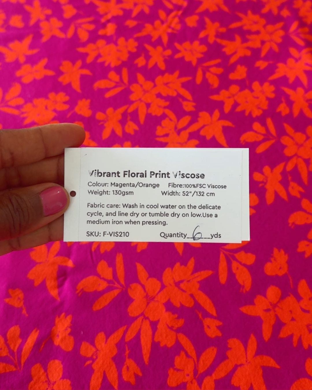 The pattern suggests Cotton Blends, Eyelet, Linen, and Crepe fabrics for the design. I used this VIBRANT FLORAL PRINT VISCOSE from Core Fabrics. When I first saw the print, I knew it had to become a maxi dress. The vibrant colors and amazing drape were screaming for a garment that would highlight these outstanding characteristics. I also think it’s an awesome print to transition into fall. The orange and magenta are so dynamic together.