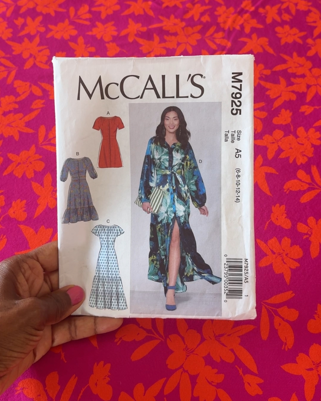 Do you have patterns that you sew over and over again? You may recall that I started THIS VIEW B VERSION of McCall’s 7925 in 2020 and finished it recently. I couldn’t wait to sew the pattern again. But this time, I made the Flutter Sleeve Maxi Dress, with View C. I’m pretty sure this dress is currently my favorite maxi. Another beautiful addition to my new wardrobe. Let’s get into the details. But first, here are some closeup photos of the dress.