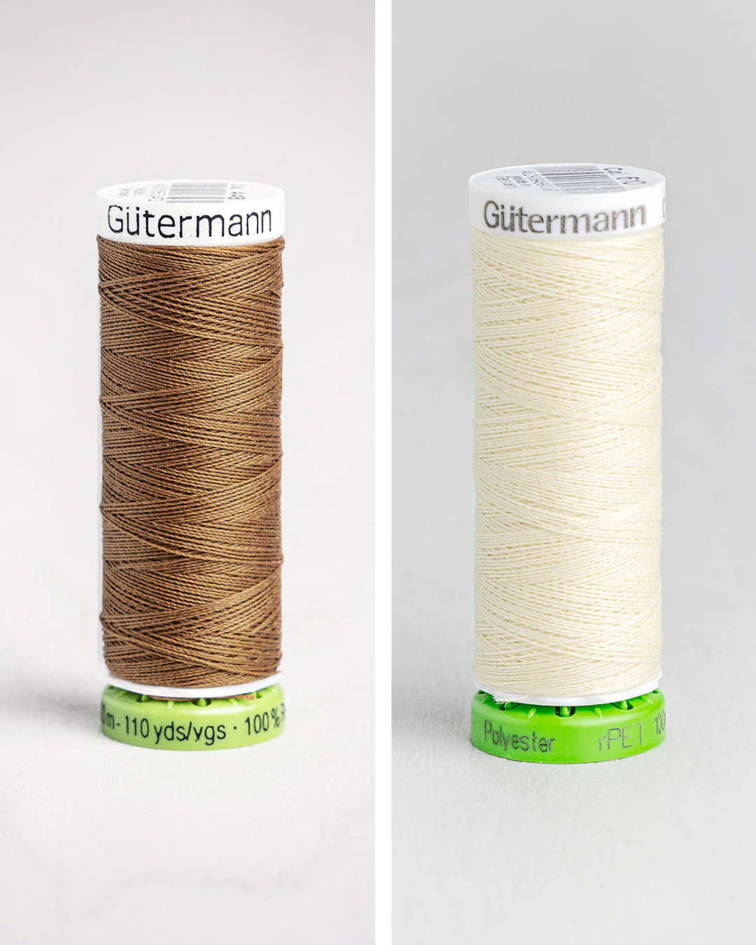 The only notion required for the skirt is a 7″ INVISIBLE ZIPPER (comes in 8″). Two hooks & eyes and two 5/8″ buttons will be needed for View B of the blouse. Of course you will need thread and I used this GÜTERMANN ALL PURPOSE RECYCLED THREAD from Core Fabrics in the colors Copper and Whipped Butter. One thing I love about their website is how they coordinate notions on the same listings with their fabrics. It’s really helpful to choose your thread colors by their suggestions because they see the threads next to the fabrics in person. I always follow their suggestions and it works out perfectly every time.