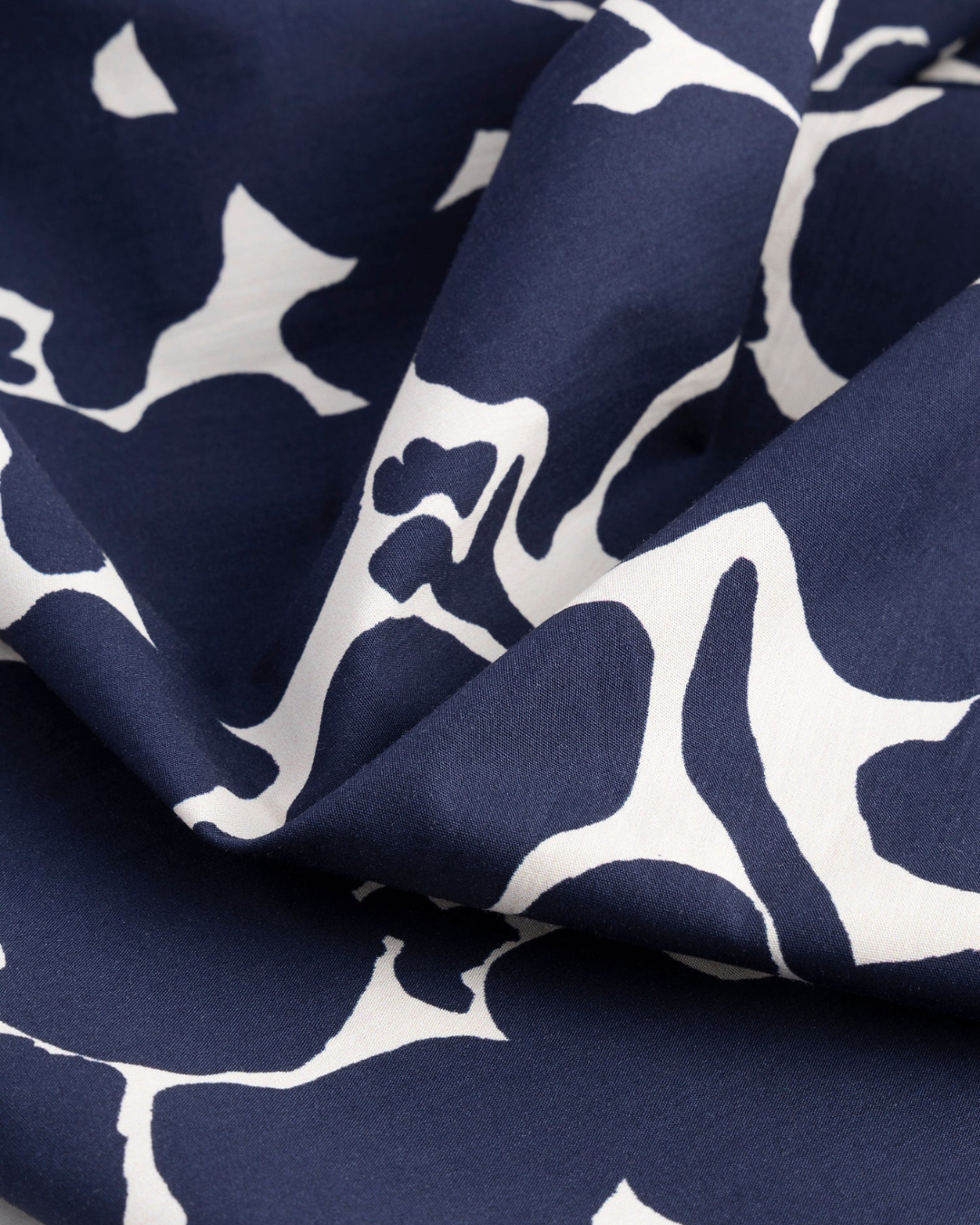 When I laid my eyes on the fabric for the blouse, it set the stage for the entire ensemble. I knew immediately that it would become a button front blouse. TheΒ LARGE INKBLOT FLOWER PRINT COTTON POPLINΒ was a perfect choice for a couple of reasons: 1. It has a crisp hand which I knew would work well for this blouse. 2. I love navy and cream together because I think they look rich and sophisticated with classic pieces. Have you ever envisioned an entire outfit by simply looking at a piece of fabric? I do itΒ all the time.