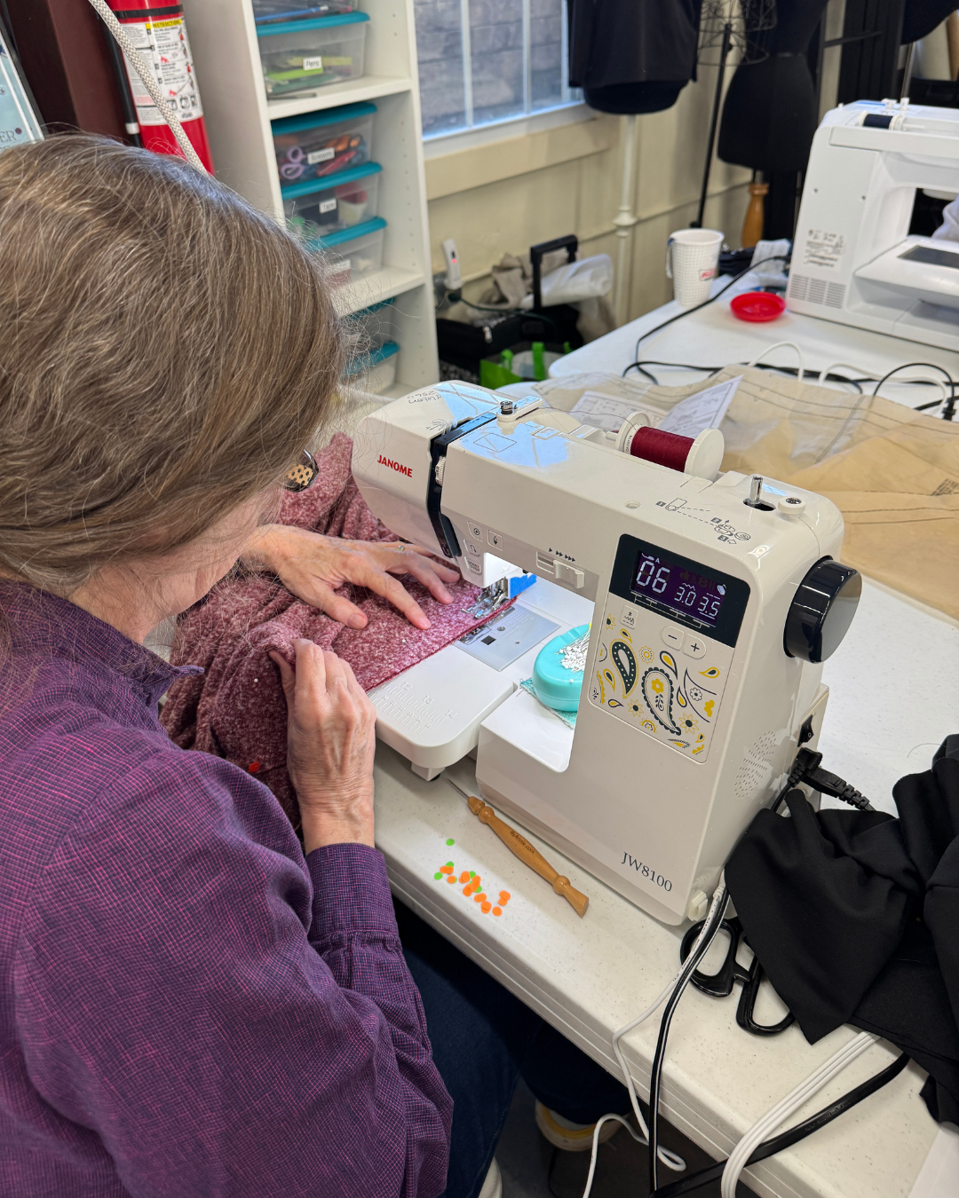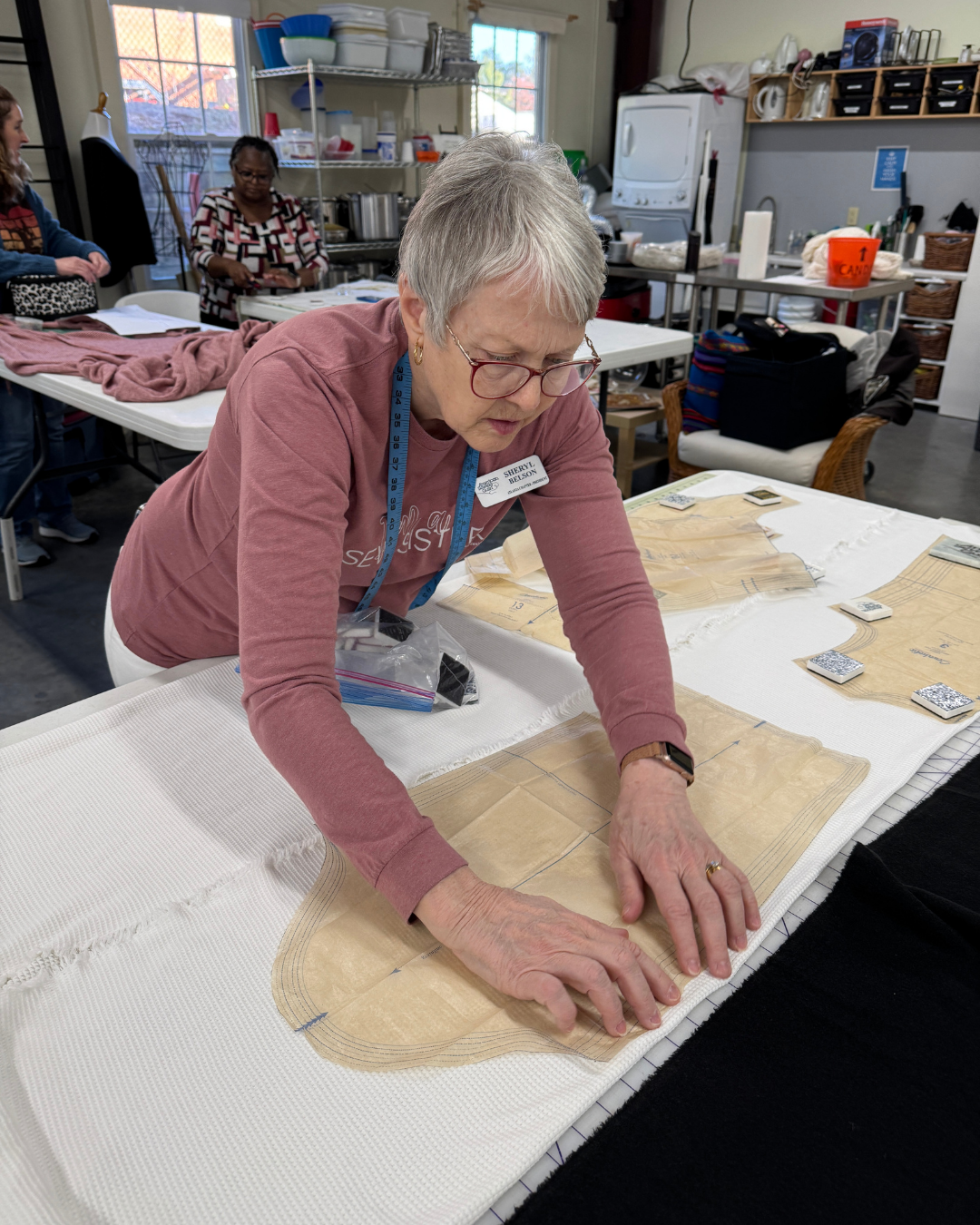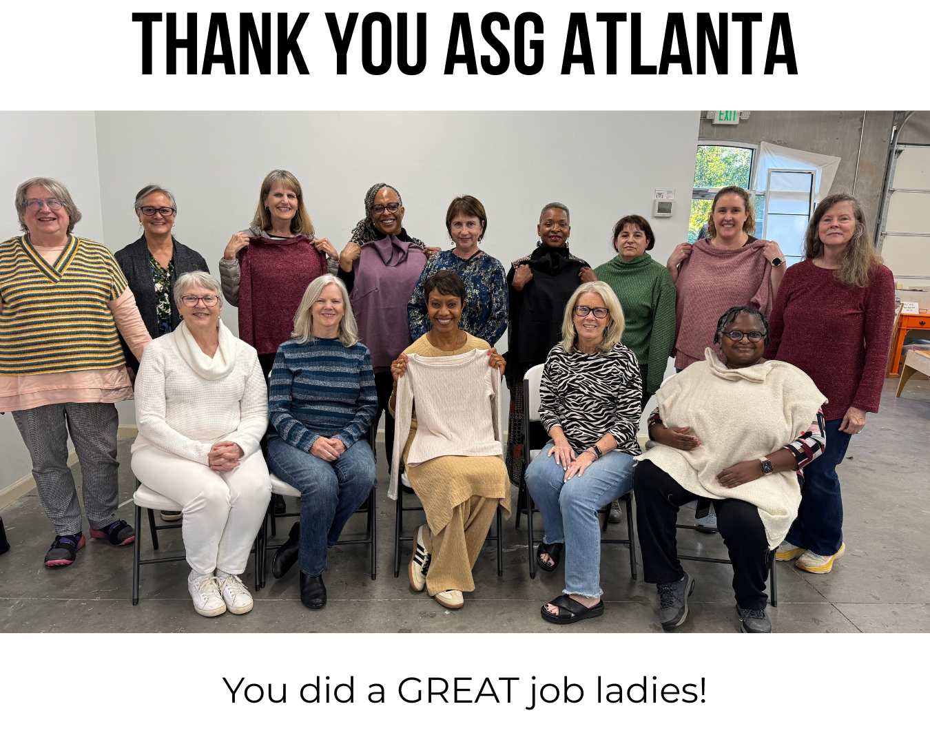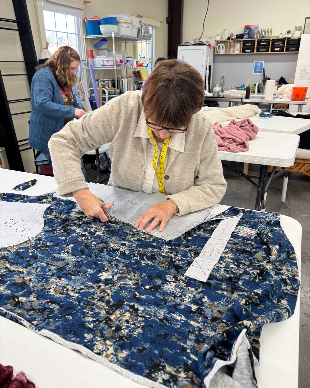 I provided the ASG Members with a checklist of items to bring to the workshop. This was not a learn to sew class. It was designated for those who already have basic sewing skills. In the first half of the workshop, we cut our fabrics, then set up our machines. After lunch, we sewed our sweaters as I shared tips along the way. If you’d like to see a few of the tips I shared at the workshop WATCH THIS VIDEO. They all did great work and I had so much fun spending time with them. Here are some photos of their work.
