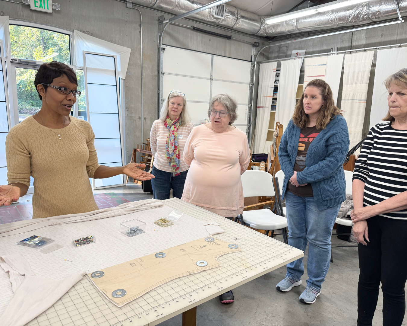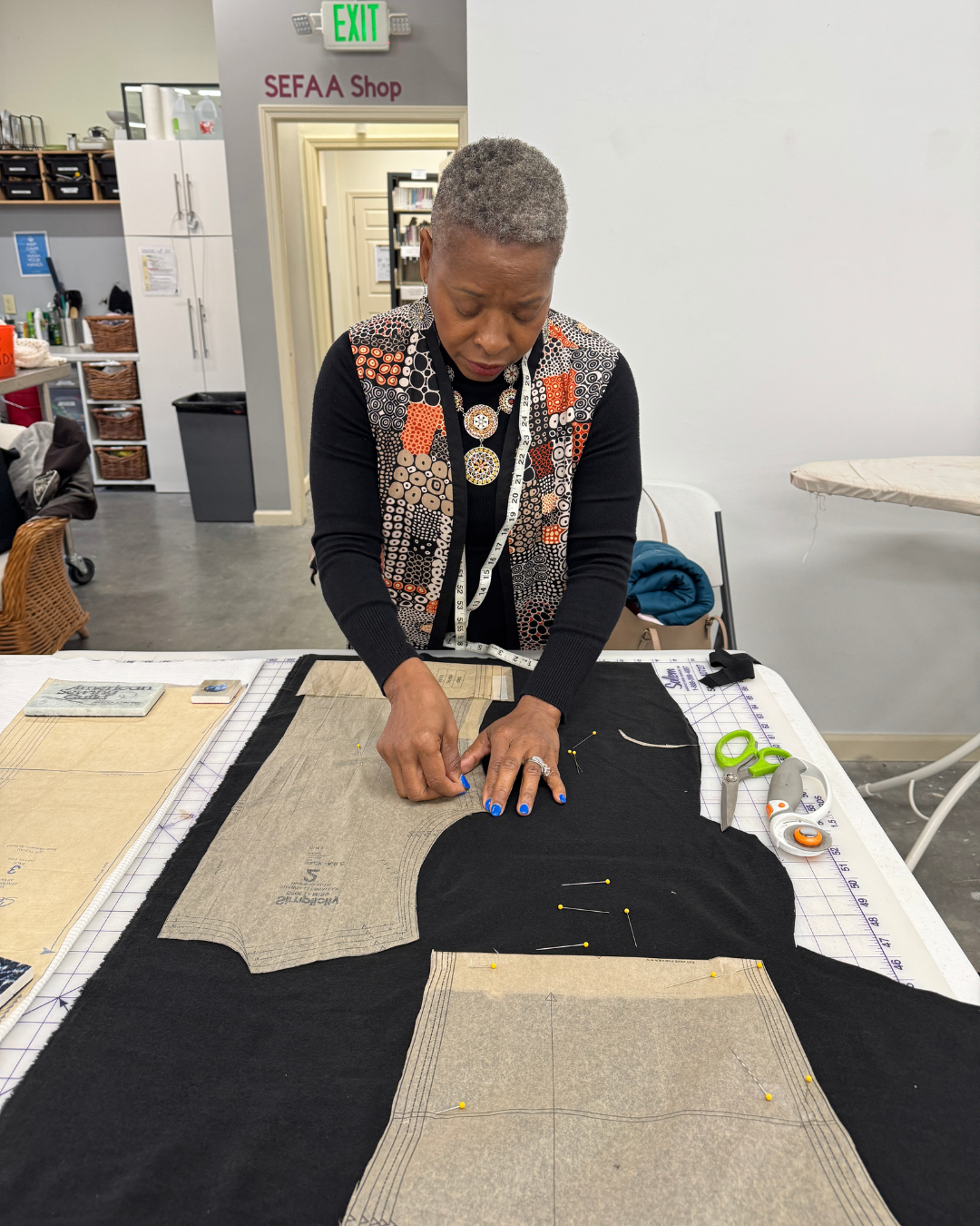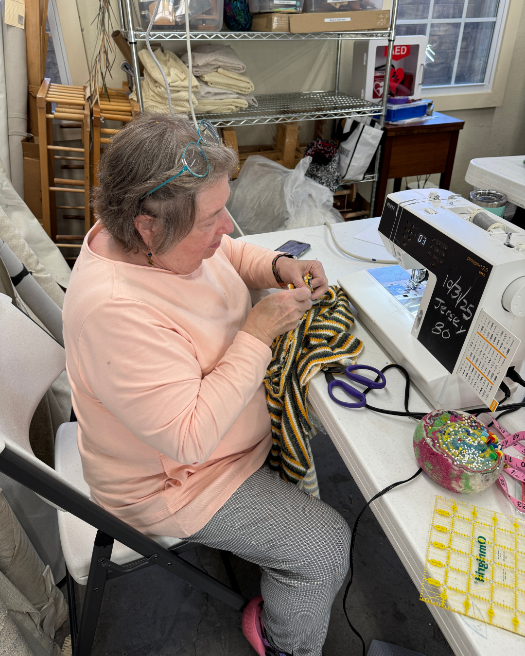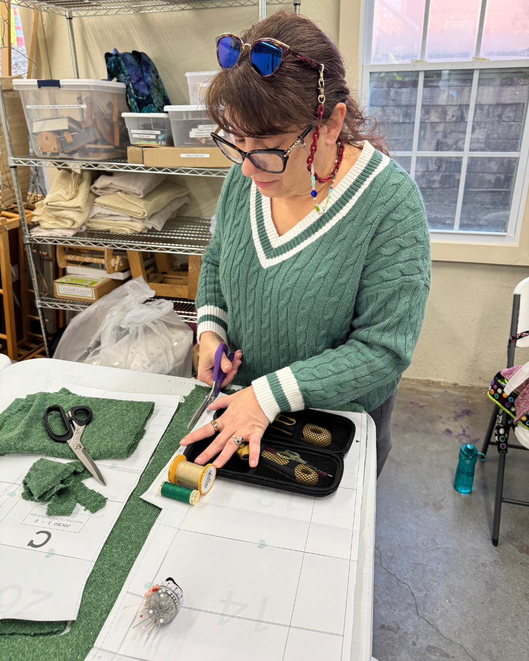 I provided the ASG Members with a checklist of items to bring to the workshop. This was not a learn to sew class. It was designated for those who already have basic sewing skills. In the first half of the workshop, we cut our fabrics, then set up our machines. After lunch, we sewed our sweaters as I shared tips along the way. If you’d like to see a few of the tips I shared at the workshop WATCH THIS VIDEO. They all did great work and I had so much fun spending time with them. Here are some photos of their work.