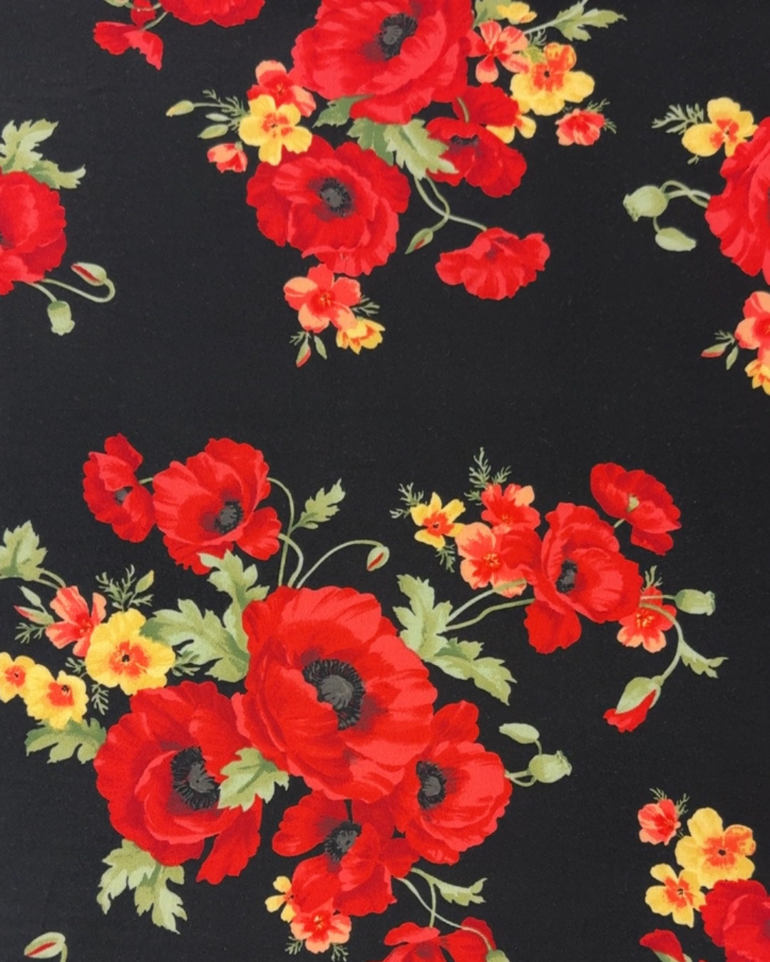 When I first saw the pattern, I knew I wanted to make it with a bold print, something that complements the vintage style. The beautiful red poppies on the black background stood out among the other prints while I was sourcing fabrics.