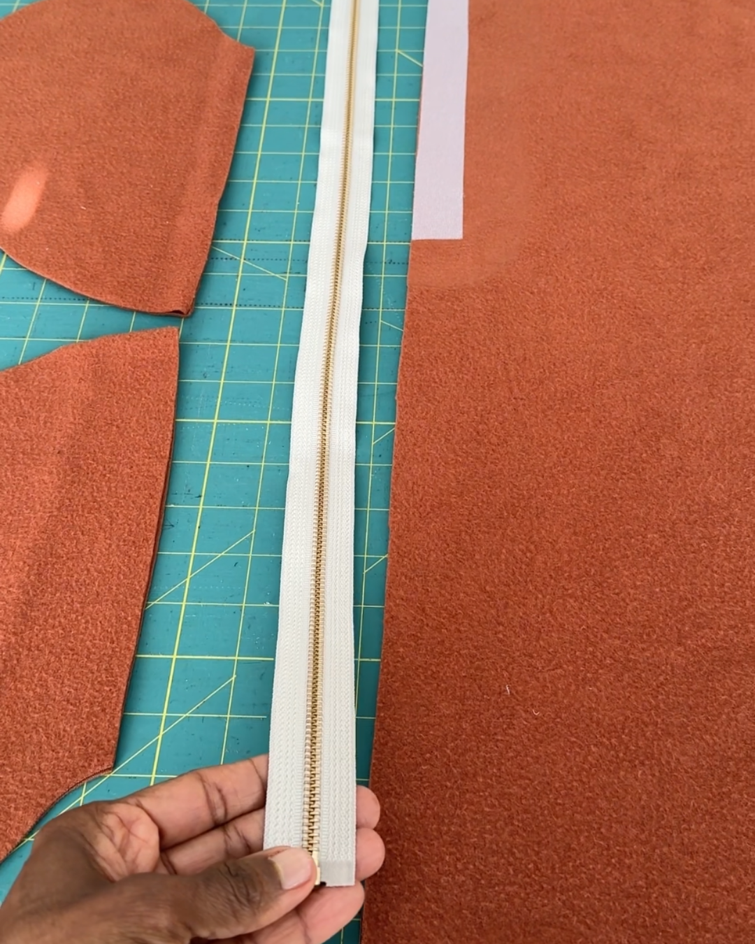 However, the zipper is another story. I want you to look closely at the bumps near the seams on the outside of this zipper installation. The reason I’m pointing this out is because I want my new beginners to see the issue. The reason the bumps are there is because there is too much bulk where the seams intersect. This issue can be prevented by reducing the bulk on the horizontal seams at the edge before installing your zipper. You can simply grade the seam allowances (cut seam layers in graduated lengths). This is also an easy fix after the insertion. I can remove the stitching at the horizontal seams, grade them, and sew the zipper back down. I will probably do that in the future because I keep looking at it — but I was lazy and didn’t feel like it when I finished the zipper.